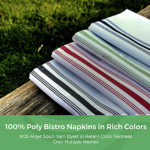 Our bistro napkins are extremely popular among our customers because ofthe high quality MJS Polyester yarn that we weave these in using the latest technology in air jet spinning that give our napkins that special combination of being soft, durable and radiant.