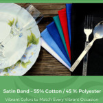 Our 55/45 blended satin band napkins also come in white and black colors (which are the biggest sellers) as well as a variety of vibrant colors to choose from with advanced dyeing technology that retains the freshness of the color over multiple washes.
